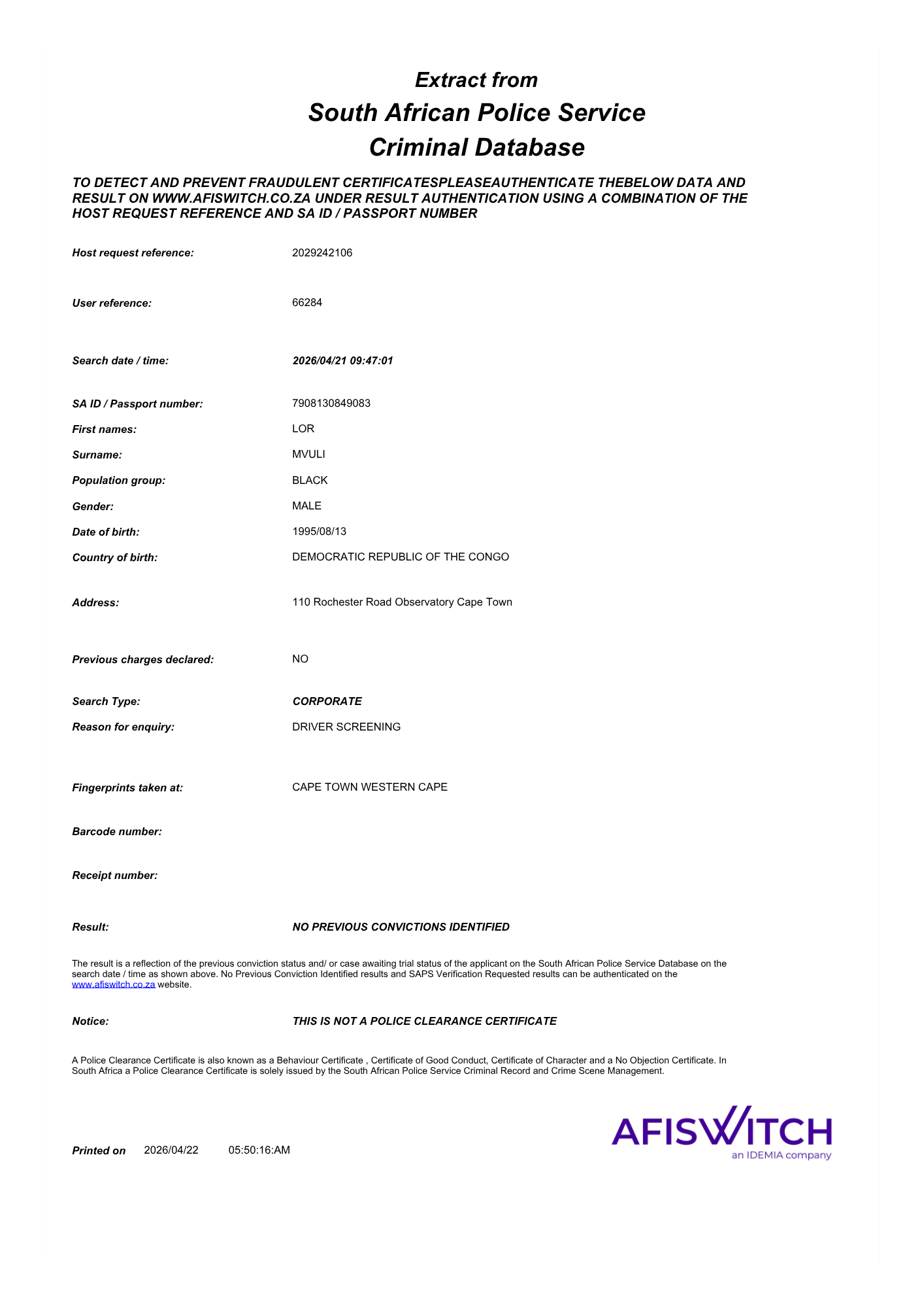 Authenticate Results